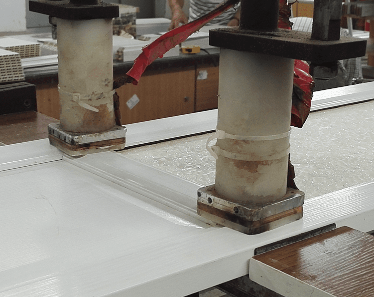 Pictures of on-site application of High frequency panel assembly adhesive