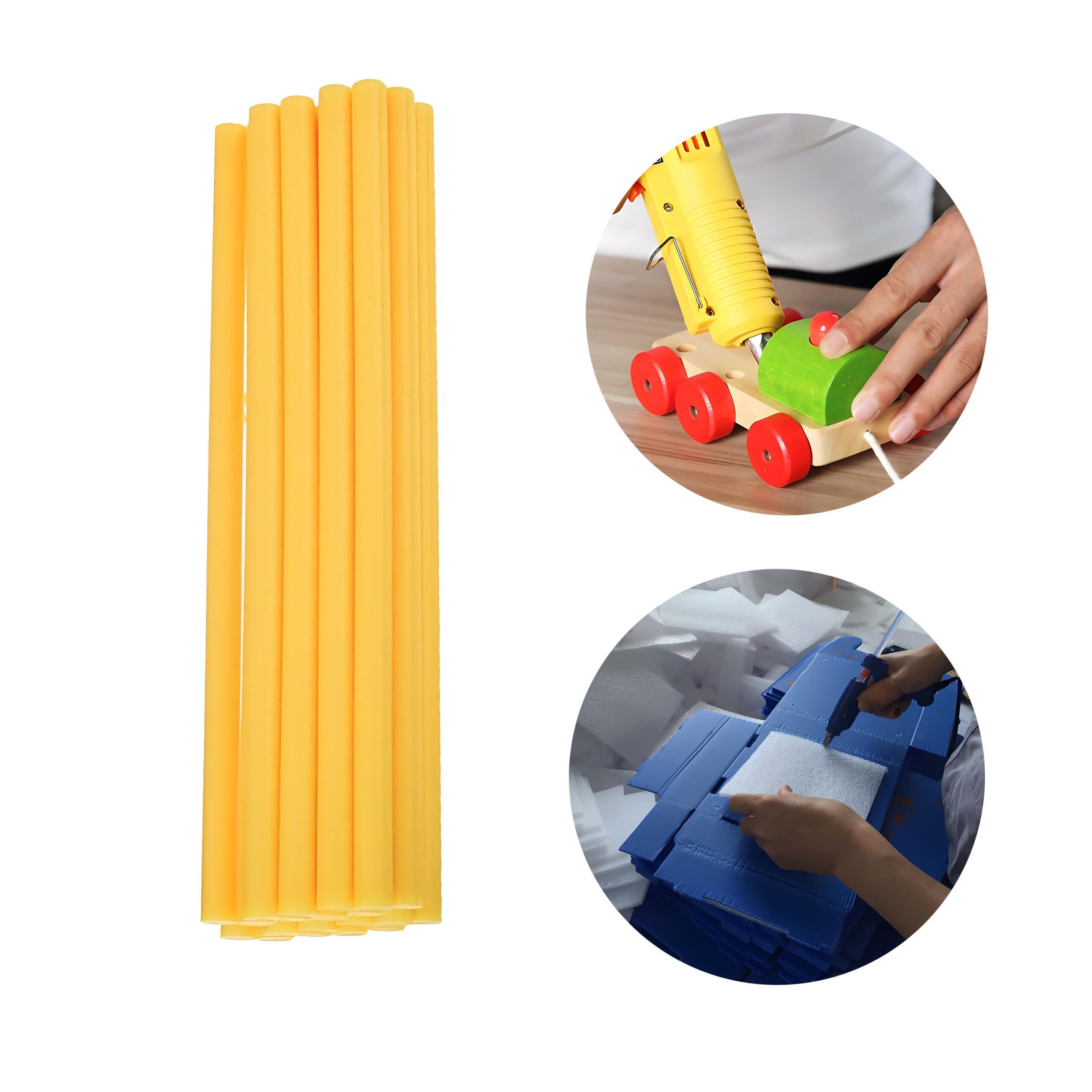 Hot melt glue sticks for bonding wood, speakers, furniture, wigs, artificial flowers, plastics, metals, paper, toys, electronics, cartons, gift boxes, handbags, air filters, wreaths, handicrafts, carpets, shoe materials, ceramics, glass, lampshades, pearl cotton, foam, food packaging boxes, etc.