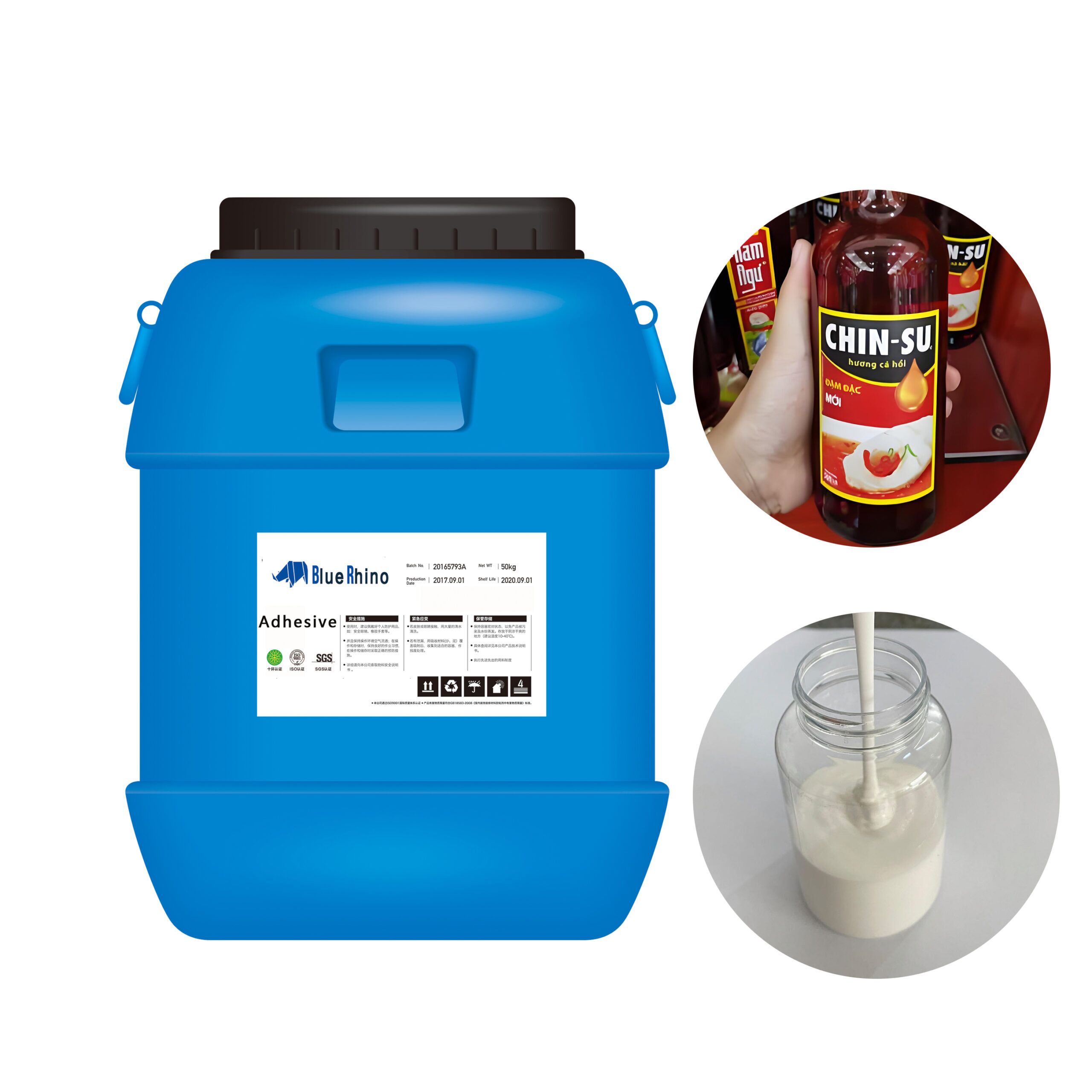 A1. Our water based label glue can be used to glue paper, plastic, composite labels on glass bottles and plastic (PP, PE, PET) bottles, and can be used in condiments, beer, oil, vinegar, jam and other industries through rotary labeling machines, linear labeling machines or manual gluing.